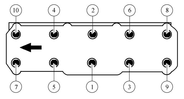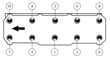 15)使用工具按下图顺序(2分)预紧气缸盖螺栓(4分),工具使用(2分)