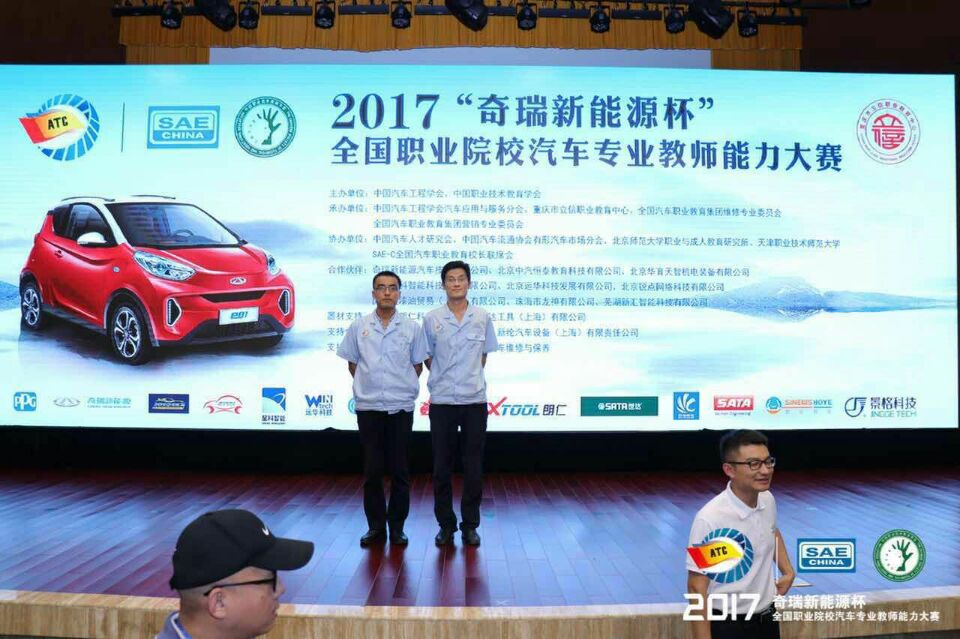 由中国汽车工程学会、中国职业技术教育学会主办的“2017‘奇瑞新能源杯’全国职业院校汽车专业教师能力大赛”2017年9月21日在重庆市立信职业教育中心落下帷幕,代表我院参赛的马福胜和王登强两位教师在本次大赛的高职组教师汽车检修赛项中荣获团体二等奖。