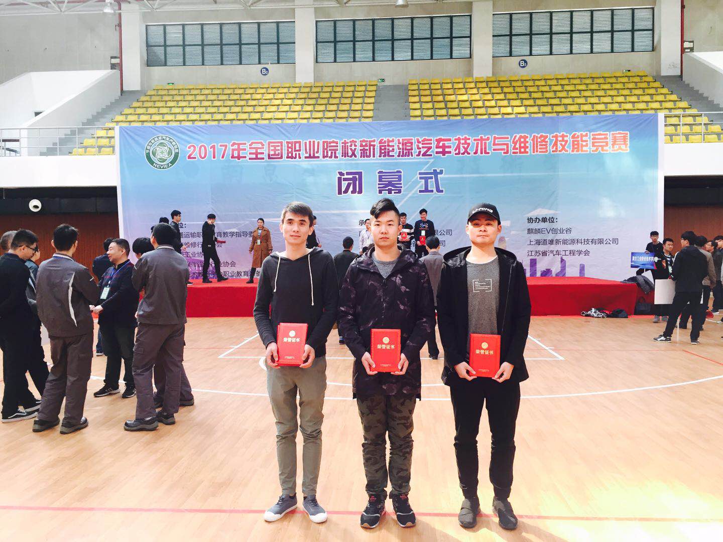 2017年全国节能与新能源汽车产教联盟职业院校新能源汽车技术与维修技能竞赛于10月29日在南京举行,来自全国各地的50多支职业院校代表队近200名选手参加了此次比赛。我院汽车学院参赛选手查斐然、马义朋、王文龙获高职组三等奖的好成绩。