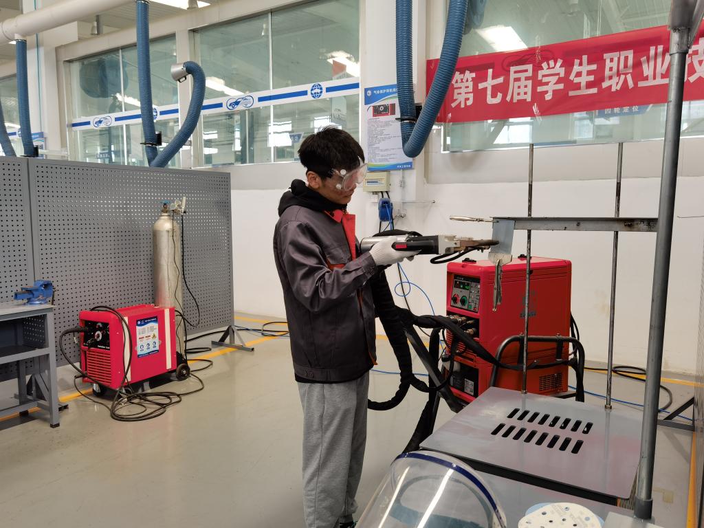 车身焊接赛项以汽车车身装配、修复过程中常用的电阻点焊为基础,通过安全防护、打磨除锈、焊机调整、试焊等步骤考核选手对整个焊接工艺流程的掌握与灵活运用能力,以及焊接过程中6S管理职业素养情况。本赛项为个人赛,考核方式为现场操作。为保证比赛顺利进行赛前组织学生进行了前期的训练和选拔,并有序进行场地和工具准备。赛场上裁判执裁公平公正,各参赛选手沉着泠静,操作娴熟,共评选出一等奖2名、二等奖4名、三等奖6名。