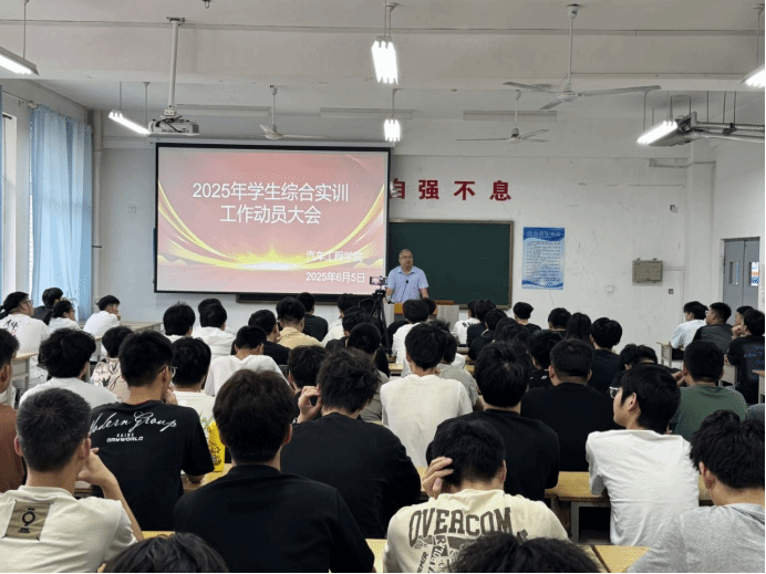 6月5日下午,汽车工程学院召开2026届毕业生综合实训及岗位实习动员大会,汽车工程学院分管学生工作负责人、产学合作办公室相关教师作动员讲话,2026届全体毕业生及相关辅导员通过线上线下结合的方式参加了大会。