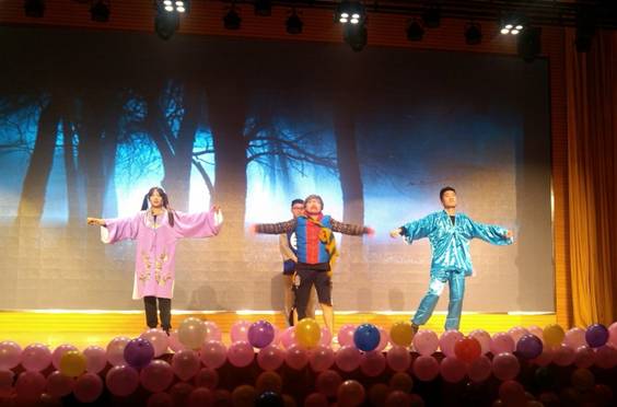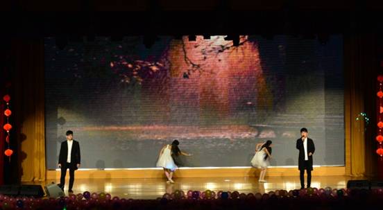 晚上6点40分,随着聚光灯亮起,激情四射的开场舞瞬间惊艳全场,靓丽的舞蹈服饰、动感的舞姿引得现场观众掌声不断,金狮舞猴年的精彩把晚会推向了第一个高潮。歌曲串烧《甜蜜蜜》《相亲相爱的一家人》《奔跑吧!汽车人》、《野子》、《时间煮雨》,或浪漫温馨,或轻快悠扬,或活泼动感,给观众带来了一场视听享受的音乐盛宴;《武林风·格斗表演》跳出了90后朝阳般的活力与激情;小品《被冤枉的记忆》《甄嬛后传》与相声《满腹经纶》诙谐幽默的语言,搞怪滑稽的动作惹得同学们捧腹大笑,嗨翻全场;曲伴舞《雪莲花开》乐曲柔美的旋律让观众品到了了南国风味、新疆风情;朗诵《梦想,一直在路上》展现了汽车工程学院2015年的辉煌;《舞魅恰恰》柔美曼妙的舞姿则深深的俘获了观众的心。晚会精彩纷呈,高潮连连。