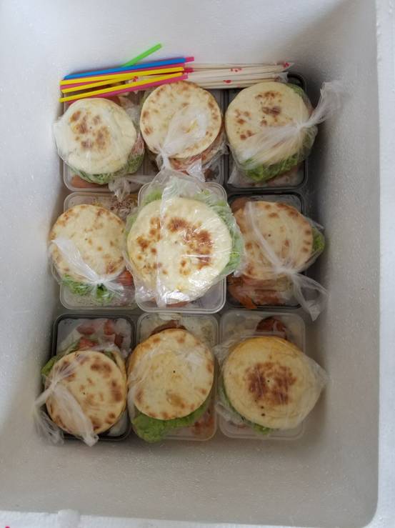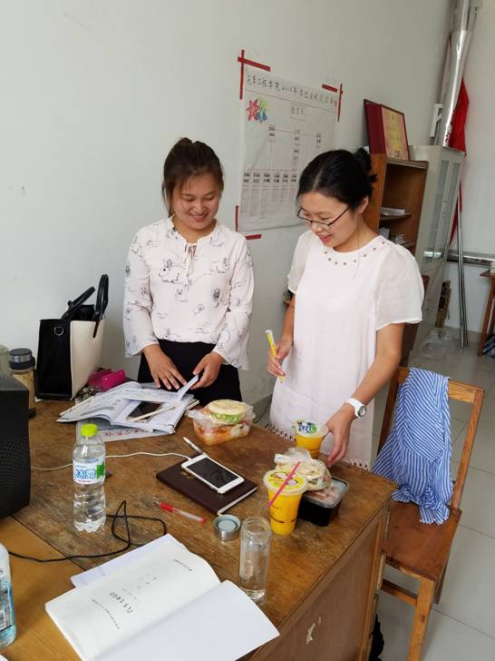 在节日前两天,创业的学生就开始准备食材,为老师们每人准备了一份爱心午餐,包括鸡排、鸡蛋、牛排、水果等。教师节中午,做好的爱心午餐准时送到老师们的手中,师生坐在一起其乐融融,欢聚一堂。