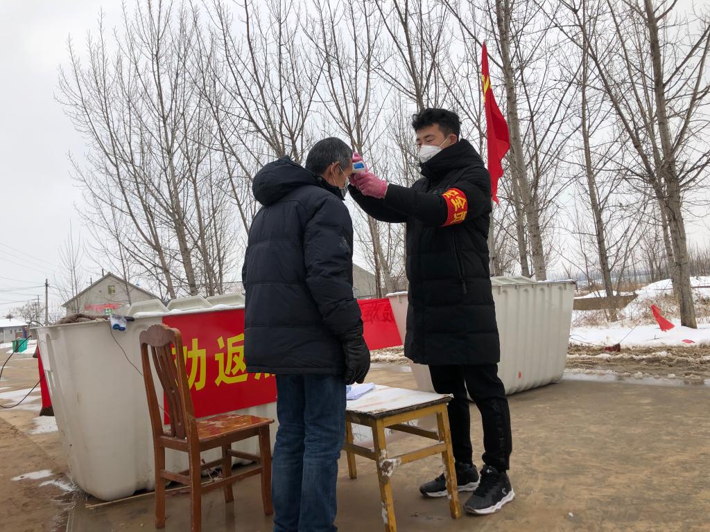 潍坊市寒亭区朱里街道西芝村疫情防控劝返点,学院2016级汽车汽车检测与维修技术专业(五年制)丁新全同学正为过往车辆司机乘客测量体温,并做好登记。在每天劝返点的工作中,无论有人没人,丁新全总是挺直腰板,一丝不苟的站在党旗下,检查过往车辆。在紧张的防疫气氛下,他笔直的身姿代表了一种精神、一种力量,使人振奋,令人动容,让过往的干部群众都受到了鼓舞。大家都说,从这个学生身上看到了战胜疫情必胜的信心,也看到国家未来的希望。