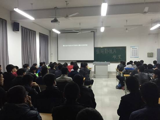 为纪念抗日战争胜利暨反法西斯战争胜利70周年,深化爱国主义教育,汽车工程学院于12月3日晚自习在惠泽二号楼举办爱国主义影片放映活动。