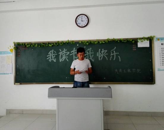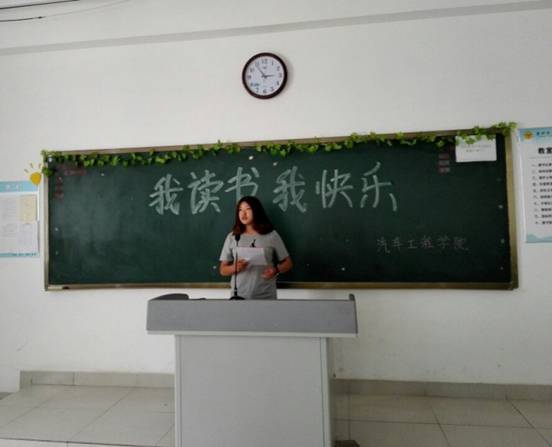 为增强同学们对阅读的热爱,锻炼口才能力,汽车工程学院于5月5日在惠泽2号楼举行了以“我读书,我快乐”为主题的朗诵比赛。
