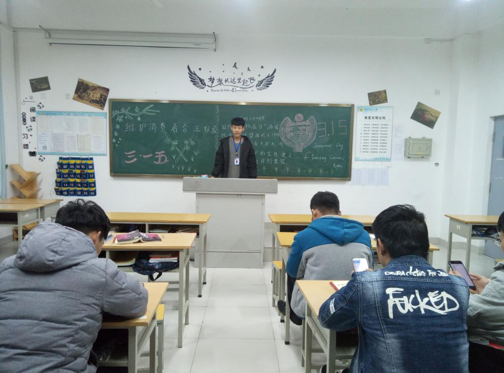 为加强广大学生对消费者权益的认识,提高同学们的消费维权意识,知法懂法,学会正确地维护自身的合法权益,汽车工程学院组织开展了“3·15”主题教育活动。通过讲述在生活中经常遇到的消费者权益保护相关问题,进行各种消费维权知识和各种典型维权案例的讲解和展示,并解答了同学们有关消费权益方面的问题,提高同学们对《消费者权益法》的认识,倡导同学们能合理消费、理性消费,追求绿色消费观念,共同维护消费者权益,让同学们了解消费者具有安全权、知悉权、自主选择权、公平交易权、受尊重权等一系列权利。