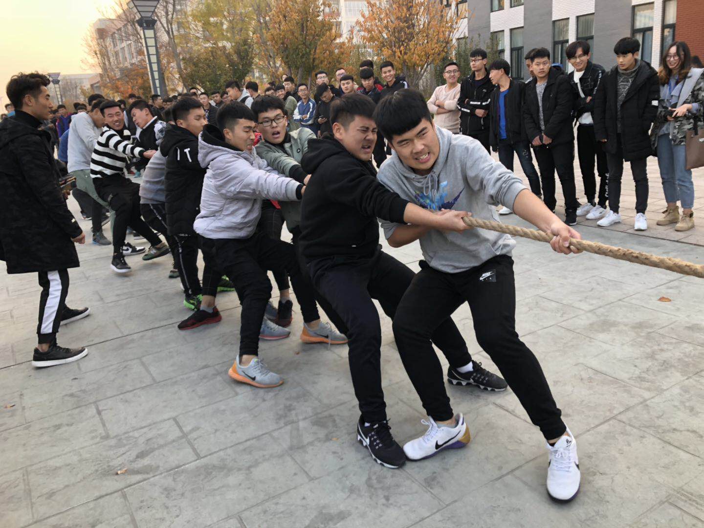 为增强集体凝聚力,发扬团体精神,激发学生参与体育健身的积极性,锻炼意志,丰富学生的课余文化生活。汽车工程学院于11月13日下午在惠泽二号楼东广场举行汽车工程学院拔河比赛。