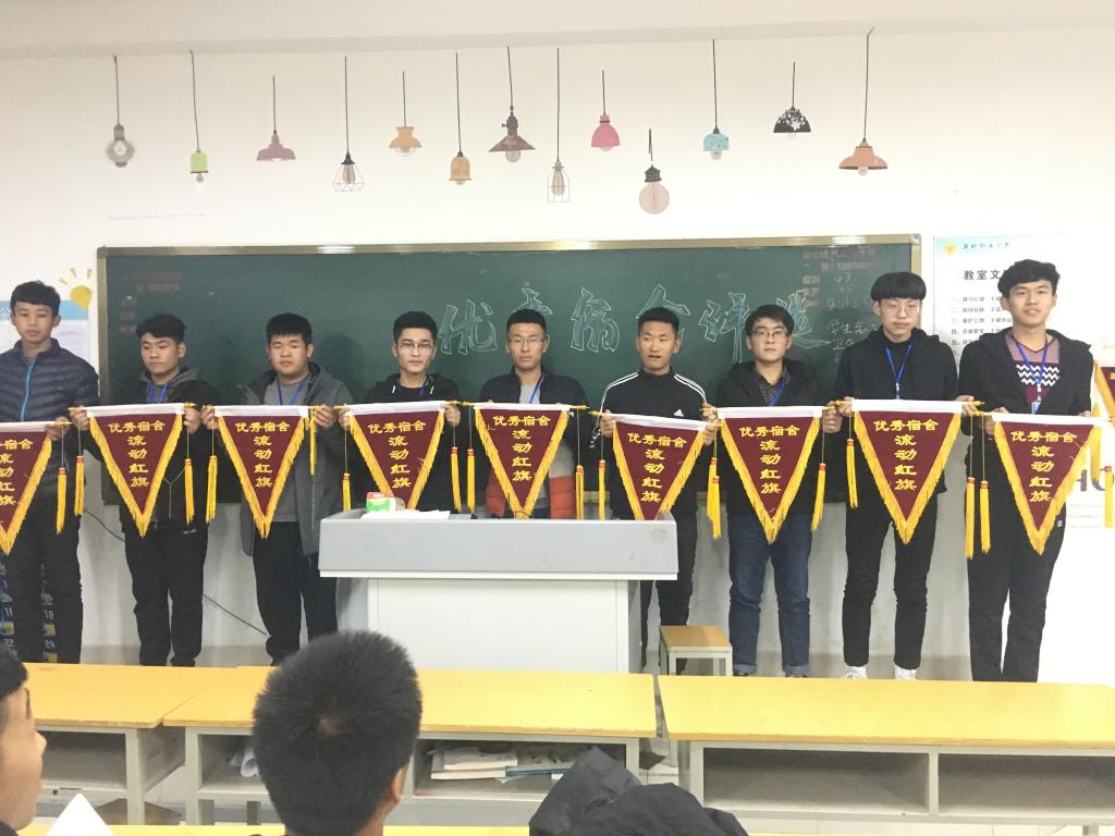 会议伊始,学生干部结合学院学生宿舍管理工作的实际情况,从宿舍卫生、宿舍安全及宿舍文化等方面提出具体要求,同时要加强宿舍文化建设,努力营造团结、和睦的宿舍文化氛围。接着宿舍管理学生干部向大家反馈了往日宿舍检查过程中存在的问题,各宿舍长认真做笔记,并分享了自己宿舍生活中的问题。最后给本次评选的十佳优秀宿舍颁发了锦旗。