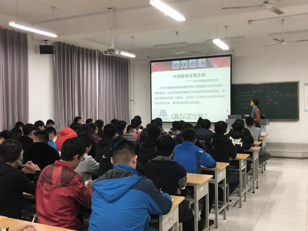 为提高数独协会成员的能力与技巧,拓展同学们的知识面。不断激发大学生的创新灵感,活跃思维,提升自我,成就自我。汽车工程学院数独协会11月16日下午在惠泽2号楼A114教室举办数独培训会,本次培训邀请潍坊市数独协会会长滕鲁美进行讲解,协会成员100余人参加了此次活动。