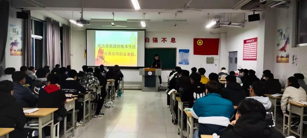 11月30日至12月2日,汽车工程学院组织开展了“宪法在我心中”主题团课和宪法知识抢答游戏。团课伊始,各班团支书首先通过PPT形式向大家宣读学习了《中华人民共和国宪法》,传播法律精神,强化法律意识,宣讲结束后,开展宪法知识抢答游戏,让广大汽车学子在愉悦的氛围中学习法律知识;开展了 “宪法晨读”活动,利用早读时间,晨读宪法,进一步增强学生的宪法意识,全面提升学生的法律素养;开展了演讲比赛,增强教育的主动性、参与性,强化学生的宪法体验。同时督促学生利用课余时间点击普法网“宪法小卫士"活动,学习法律知识,积极参与宪法知识挑战,做宪法的学习者、践行者、宣传者。