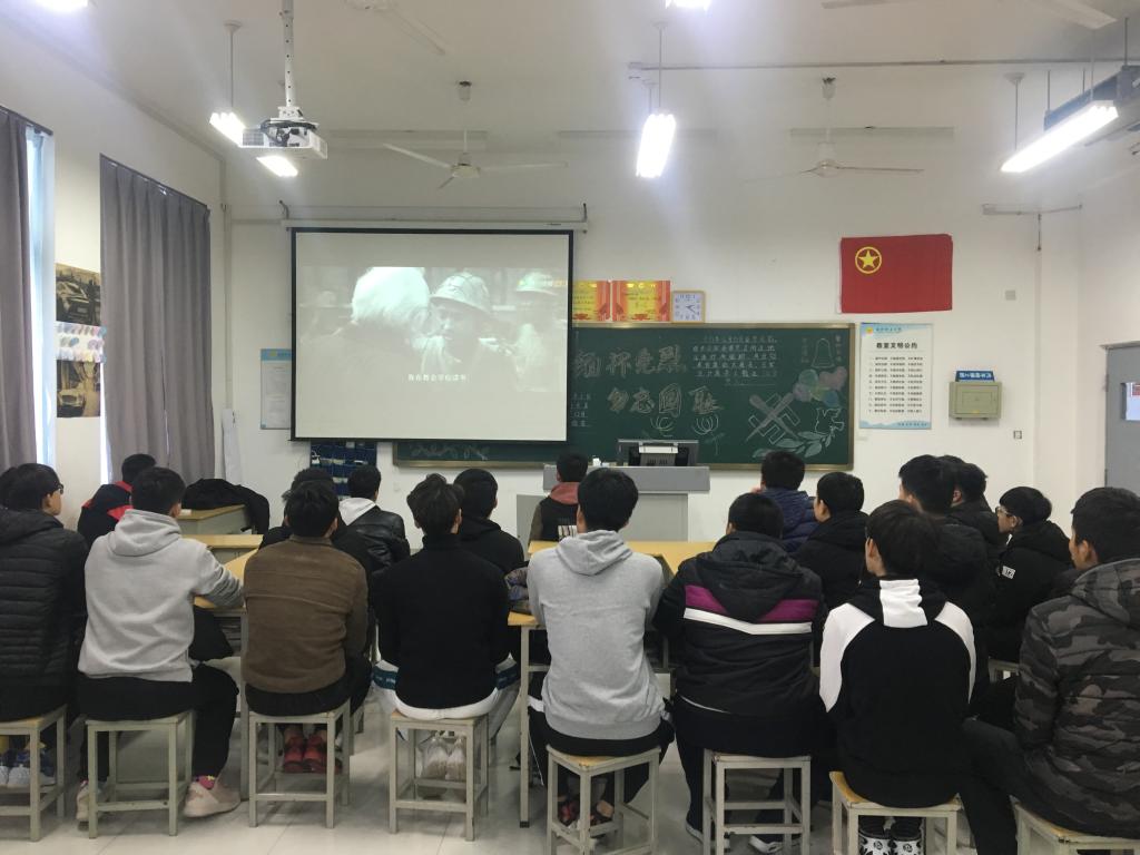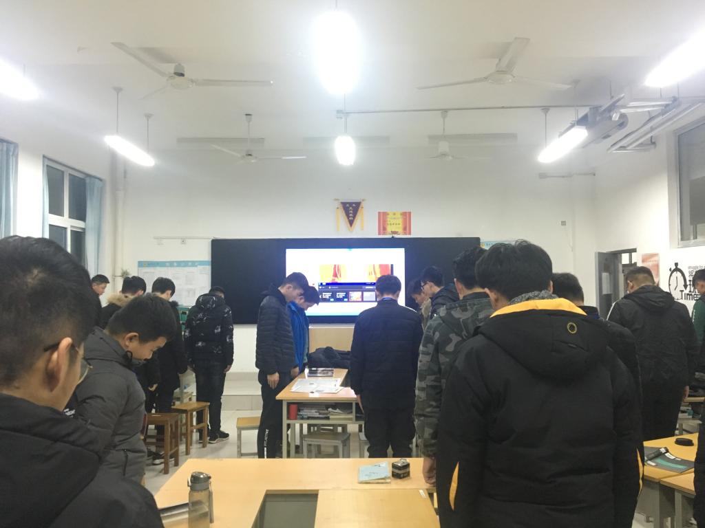 团课开始,同学们怀着沉痛的心情观看着影片,他们脸上没有了往日的喜悦,有的更多的是心酸,视频里播放的“南京”、“12.13”、“30万”字样,时刻提醒同学们在1937年12月13日的南京,日本军国主义者犯下的滔天罪行。随后,全体同学庄严肃立,低头默哀五分钟,以寄托对南京大屠杀三十万遇难同胞的悼念与哀思之情。