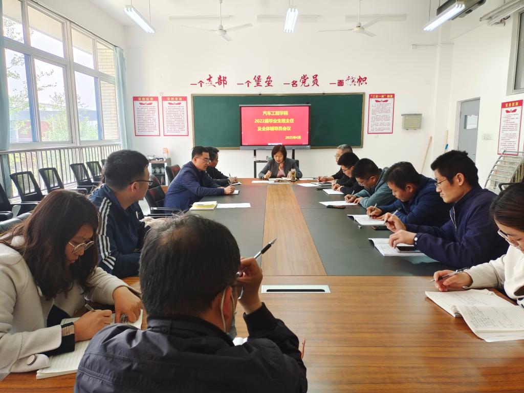 4月27日下午,汽车工程学院2022届毕业生实习工作动员大会在惠泽2号楼B208会议室召开。汽车工程学院领导班子、产学合作办公室老师、实习班级班主任及全体辅导员参会。