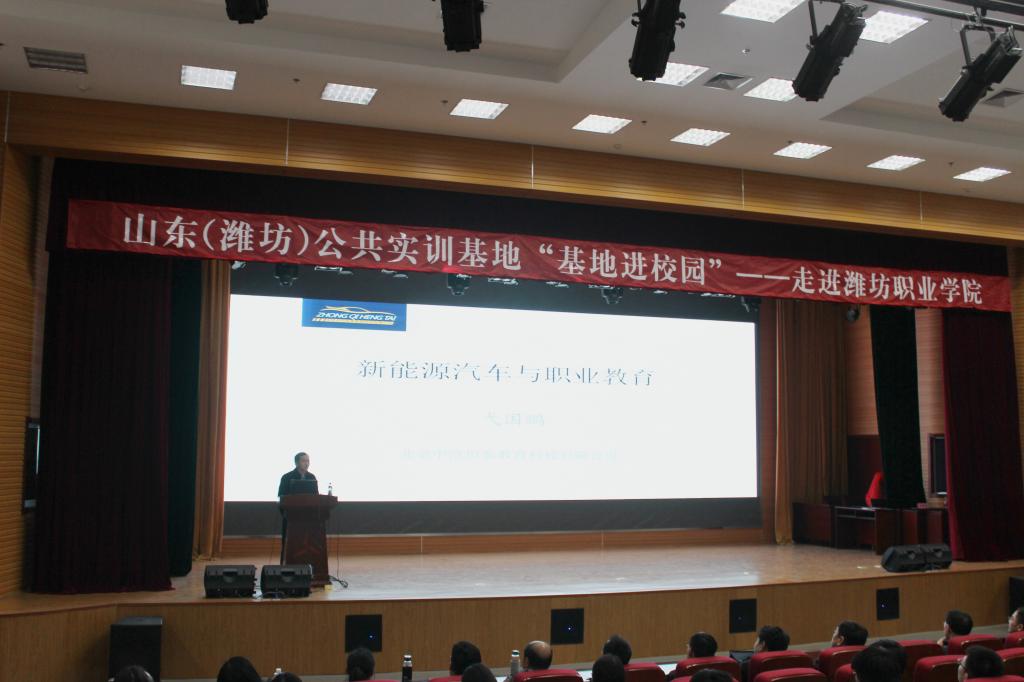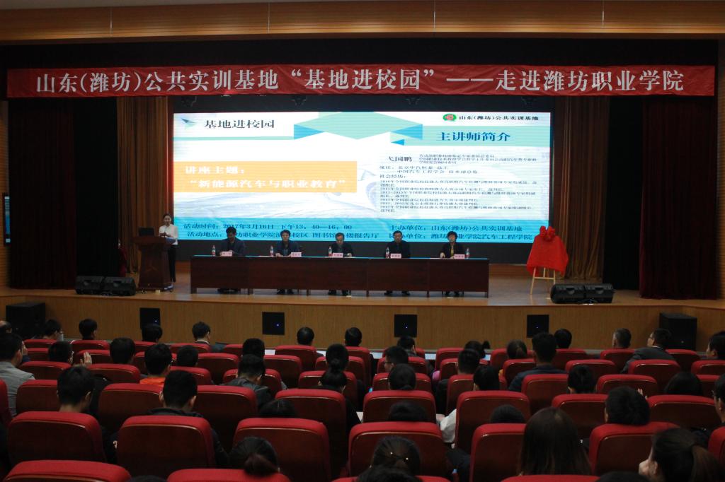 3月16日,山东(潍坊)公共实训基地“基地进校园——走进潍坊职业学院”活动在图书馆报告厅举行。学院党委副书记宋桂言,滨海教育投资集团常务副总经理许京波、运营副总监陈阳,中国汽车工程学会技术副总监弋国鹏,汽车工程学院全体教师及部分学生代表参加了此次活动。
