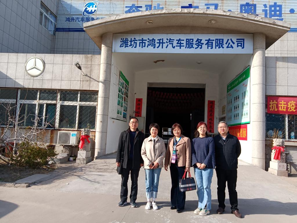 3月22日下午,汽车工程学院院长杜洪香、分管领导和相关老师一行3人,到潍坊市汽车维修行业协会会长单位、潍坊市鸿升汽车服务有限公司调研指导工作,潍坊市汽车维修行业协会会长王泽虹、秘书长石宏伟陪同接待。