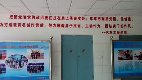 为在全院营造“更加自觉抓党风、坚持不懈转作风、奋发有为促发展”的浓厚氛围,汽车工程学院在惠泽2号楼B区一楼北中厅布置了宣传牌和宣传标语,见下图。