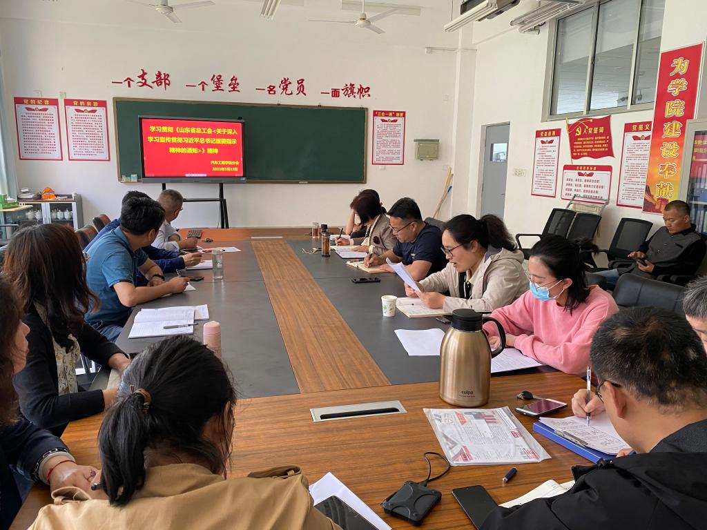 按照学校工会工作安排,5月13日下午,汽车工程学院召开全体会议,对《山东省总工会<关于深入学习宣传贯彻习近平总书记重要指示精神的通知>》进行认真学习和贯彻落实,并就学习贯彻落实习总书记重要讲话精神做出安排部署。