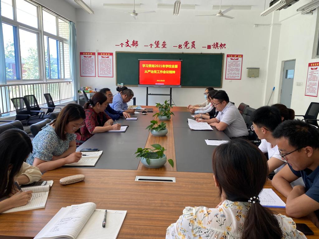 会议要求,全体党员干部要深入学习2021年学校全面从严治党工作会议精神,不断提升政治判断力、领悟力、执行力,强化理论武装,提升基层组织力,坚定信念,迎难而上,确保各项工作措施落实落地。通过“三会一课”、专题报告等多种形式载体传达学习会议精神,教育引导广大教职工全面从严治党工作会议精神为指导,自觉把思想和行动统一到学校关于全面从严治党的新要求新部署上来,始终坚持把管党治党贯穿于工作全过程。