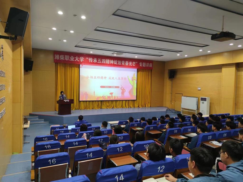 在五四青年节到来之际,为进一步传承红色基因,激扬青春梦想,引导广大青年学子把个人奋斗融入中华民族伟大复兴的时代洪流中,5月4日,汽车工程学院到潍柴职业大学开展五四青年节主题讲座活动。