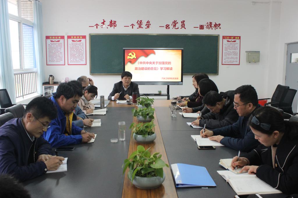 4月11日下午 ,汽车工程学院党支部召开党员大会,组织学习《中共中央关于加强党的政治建设的意见》,进一步深入学习贯彻习近平总书记关于加强党的政治建设重要论述。会议由汽车工学院党支部书记王会礼主持。