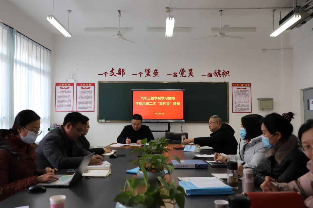 12月30日下午,汽车工程学院召开专题会议,组织全体教职工集体学习学院第六届教职工代表大会暨工会会员代表大会第二次会议精神。汽车工程学院党总支书记杨勇主持会议。