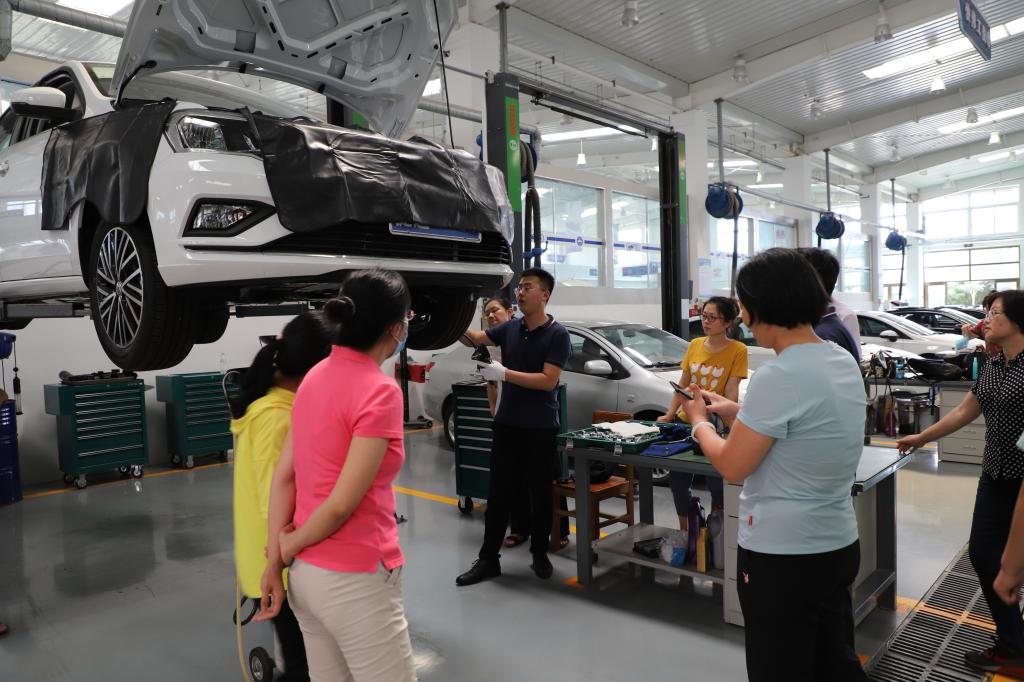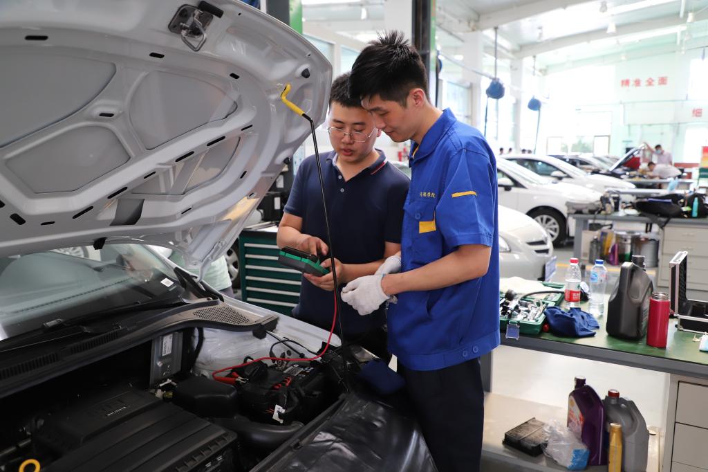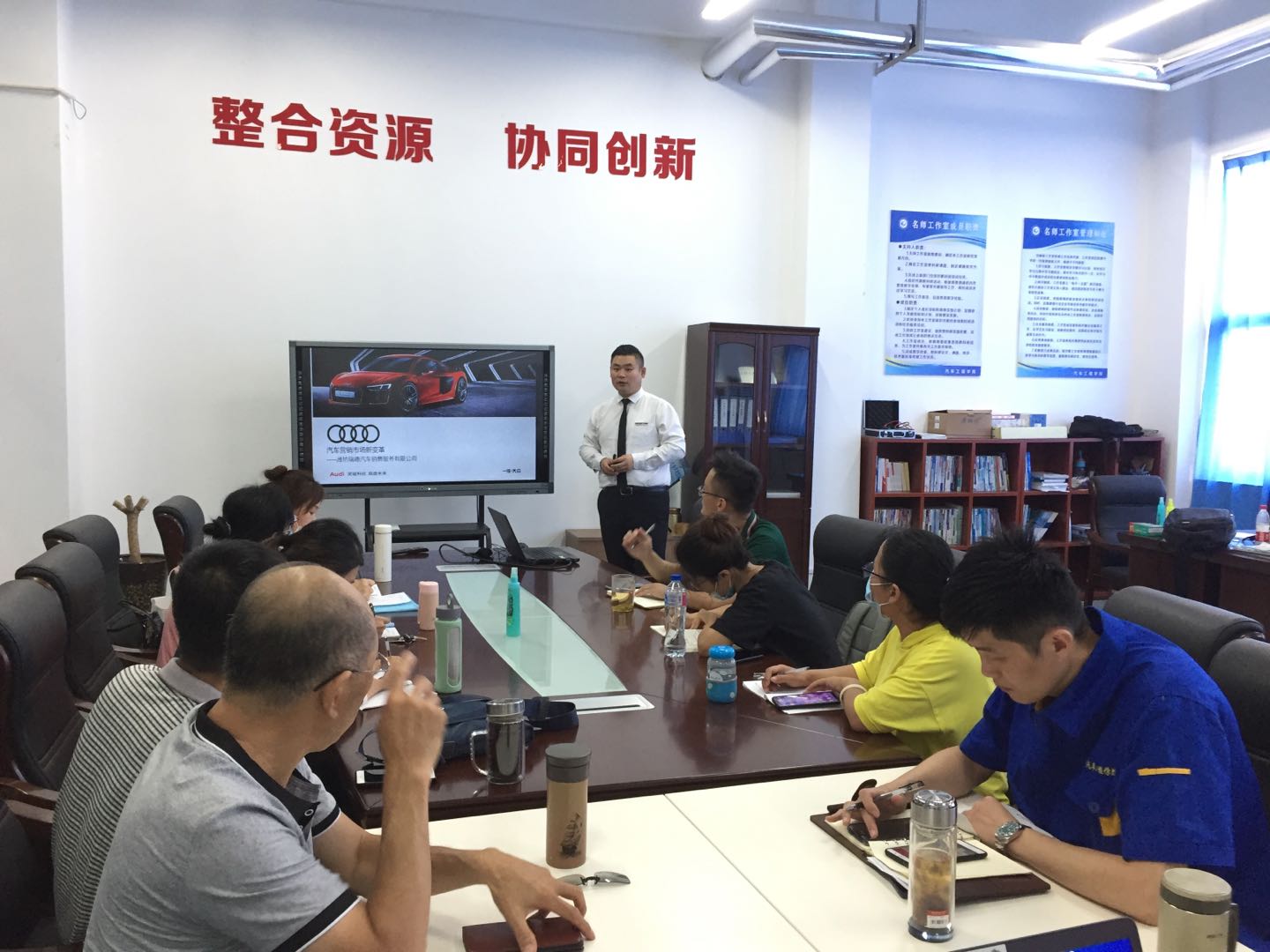本次培训主要以汽车工程学院新购实训设备为培训载体,采取现场操作讲解+实战演练、专家报告等形式,聘请了由行业企业技术骨干以及校内长期从事技能大赛的指导教师组成的培训团队,针对汽车实训设备的保养与使用、汽车售后检测与保养作业流程、二手车鉴定、新能源汽车维护与检修等项目开展培训。培训首日,东瑞奥迪4S店副总经理、销售总监封磊和广潍发达一汽大众4s店总经理马浩两位老师从实车案例讲起,建立起教学设备与工作原理之间的对应关系,把设备和教学内容联系在一起,同时辅助于实践教学,邀请受训教师动手实践,在做的过程中,进一步认识项目规范流程和注意要点。受训教师学习热情高涨,积极实践、互相交流、讨论激烈。