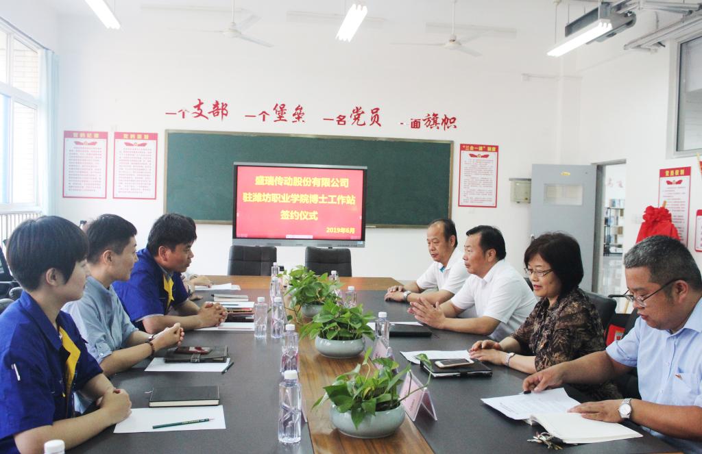 6月27日下午,盛瑞传动股份有限公司驻潍坊职业学院博士工作站签约暨揭牌仪式在汽车工程学院会议室举行。盛瑞传动股份有限公司变速器公司副总经理、工程技术研究总院院长(兼)、首席科学家苏成云,变速器公司副总经理于新涛,学院副院长贺志强,汽车工程学院院长杜洪香,盛瑞传动股份有限公司和汽车工程学院相关负责同志出席签约仪式。