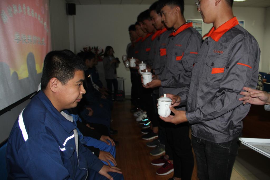 拜师仪式由人力资源部经理潘晓东主持,仪式开始,师傅就座,徒弟鞠躬拜师、敬茶、宣誓,现场氛围庄严隆重,在场师生深受感染。总装部经理、厂区代表、学徒代表分别作了发言。汽车工程学院院长杜洪香同志致辞,她对现代学徒制试点班提出三点希望:一是希望师傅带徒要三管齐下。思想上引导,作风上身教,业务上帮带,把自己的工作经验和方法无私地传授给学生。二是希望带徒形式上不拘一格。企业创造更多的机会促进师傅之间、学徒之间和师徒之间的交流,做到相互取长补短,借鉴提高。三是希望学徒们要虚心学习。努力做到“四勤”:脑勤,多动脑思考;口勤,虚心向导师请教;腿勤,积极主动地进行实践和调查研究;手勤,多动笔,多记录,多实践。